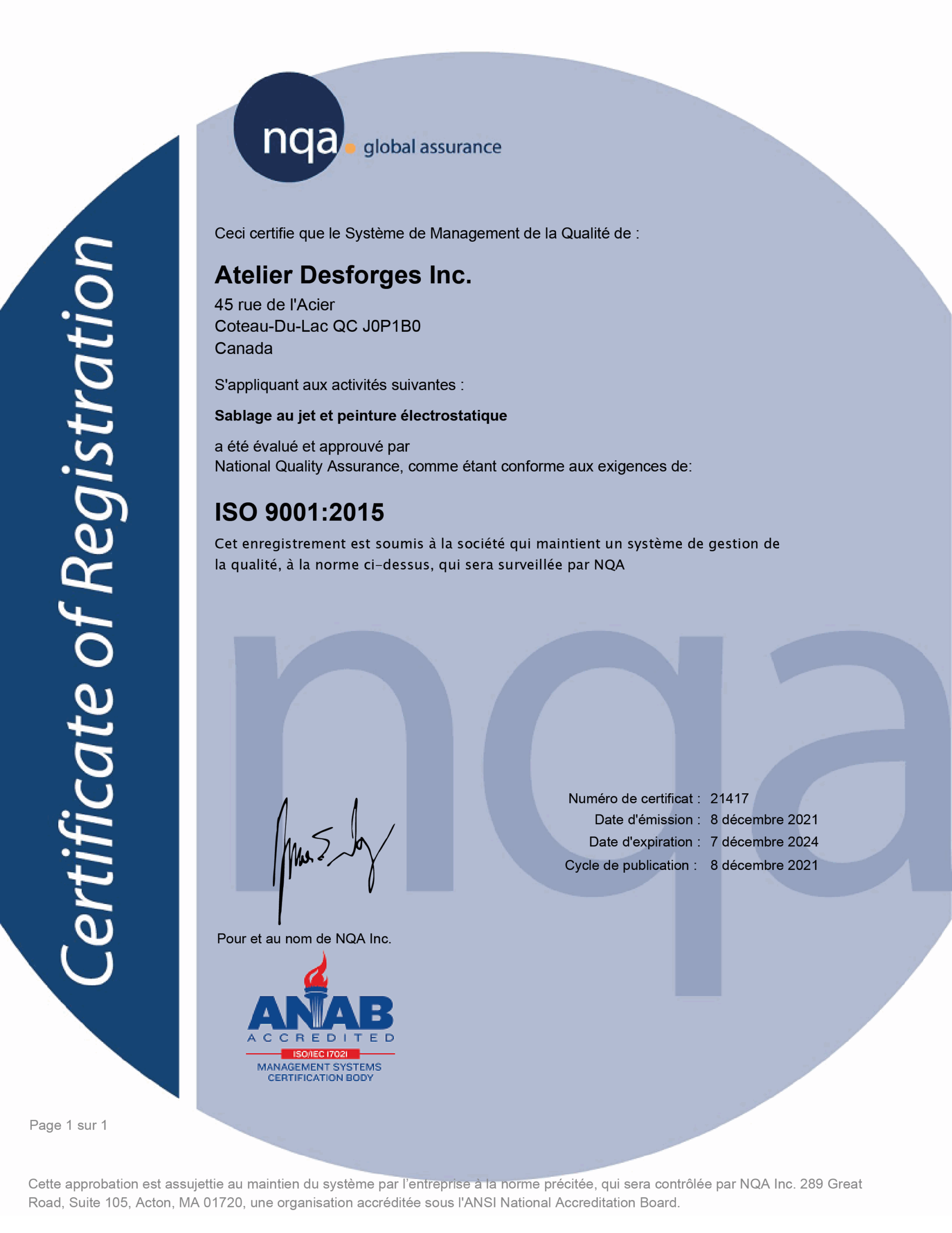 Atelier Desforges a été fondé en 2004. Aujourd’hui, l’entreprise compte plus de 30 employés dévoués. Ensemble, ils accompagnent une clientèle industrielle, institutionnelle et commerciale en offrant un service de peinture électrostatique fiable, constant et efficace.