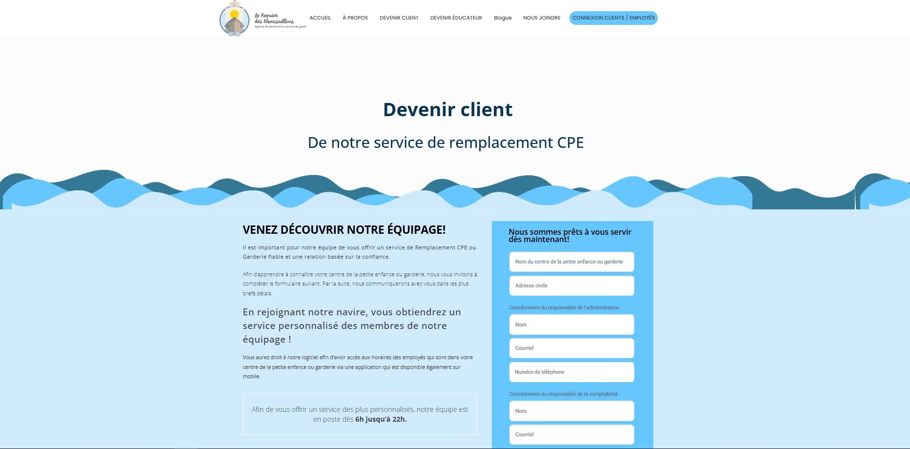 Créer un site web professionnel, rassurant et fluide, reflétant le sérieux et la réactivité du Repaire des Moussaillons, tout en facilitant les démarches pour les CPE comme pour les éducateurs.